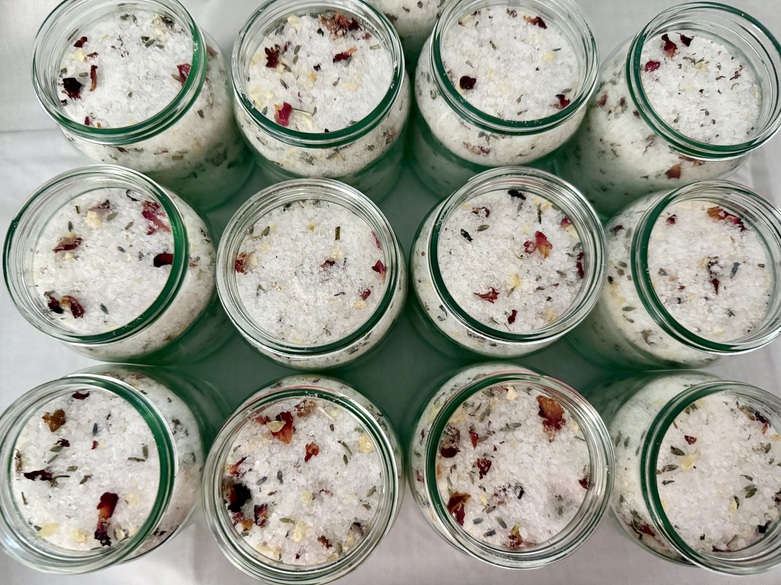 Add a generous handful to warm water and allow the minerals and botanicals to dissolve.